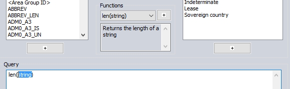 Select the len(string) function from the function list and press the + button to add it to the query.