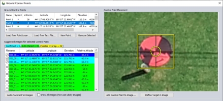 When targets or other unique features in the images are tagged as GPCs, the Auto-Place option can be used to identify where in each image the GCP is located based on user-defined examples of the target.