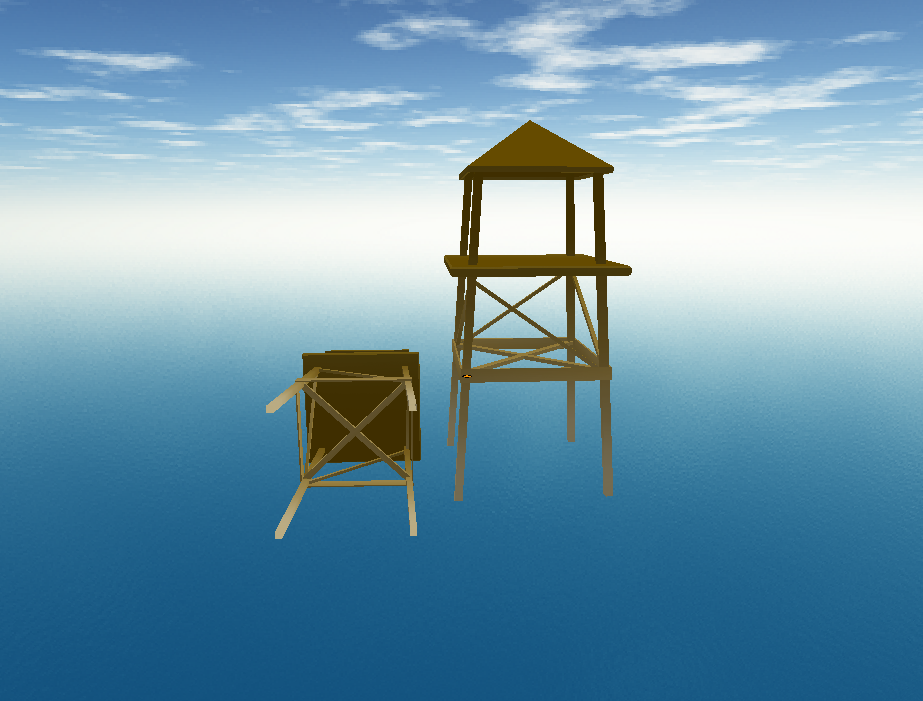 In this example, the tower on the left was loaded and appears as if lying face down from the front view (CTRL+SHIFT+F). The top of the model is facing the camera. Performing a Z-up conversion flips the model upright, as in the model on the right side.