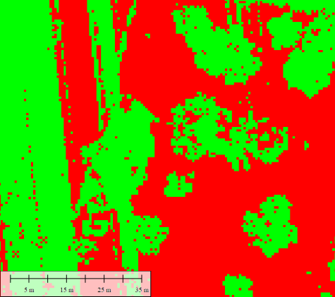 Pass Fail Density - Applies a pass/fail status to each point based on the density assessment. Creates the attribute Pass/Fail Density: Binary attribute. 1 = Pass. 0 = Fail. Use the Color by Pass/Fail Density Lidar Draw Mode option to visualize this attribute.