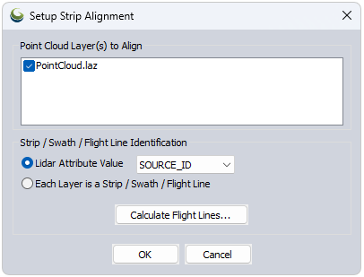 Lidar Attribute Value - If multiple strips are contained within the same layer, choose this option and select the attribute that represents the strip number.